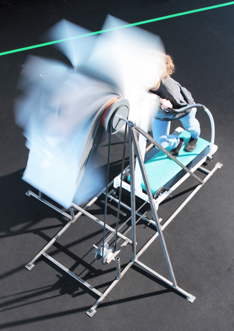 Betrachters betriebene Kinora zeigt die Loopsequenz eines wegwehenden