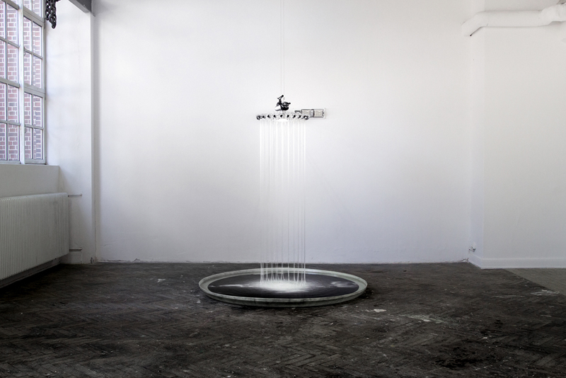 cloudburst is depicted. 24 hoses, hanging loosely in the water basin,