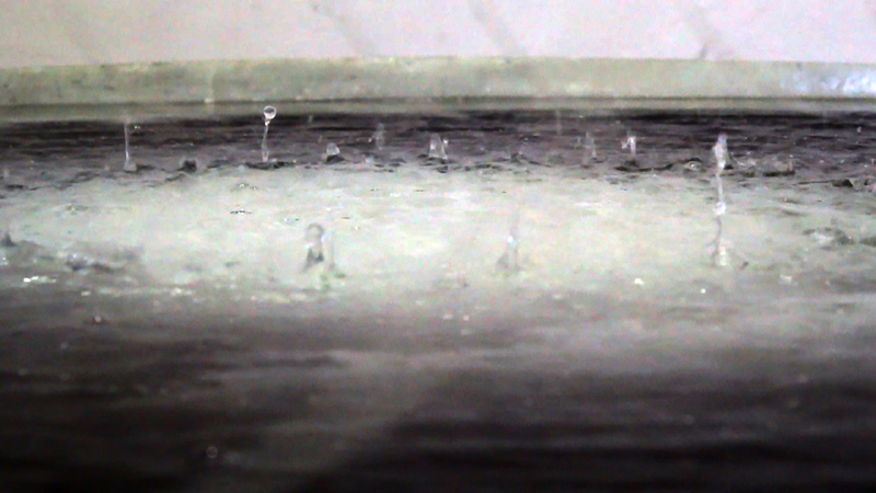 außen schwingen und dabei die fallenden Regentropfen optisch freilegen.
