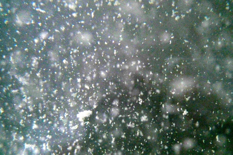 Schnee langsam fallend und immer wieder auf einem Hügel zusammen.
