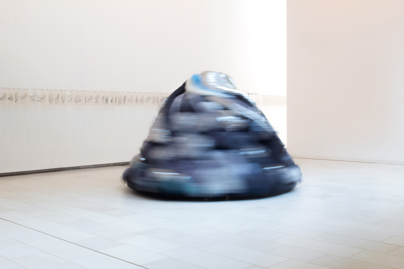 besteht aus einer Lautsprecherbox, aus der ein wechselndes, sturmartiges