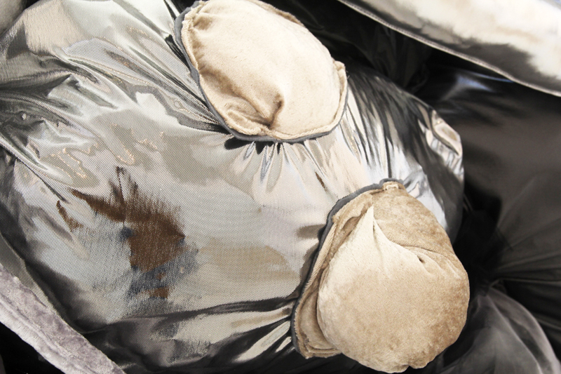 der Drehung des Berges von innen am Stoff entlang reiben. Das